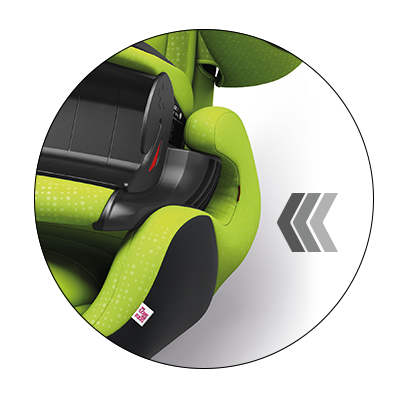 Med den praktiske k-fix + stik kan sædet nemt fastgøres til Isofix-systemet i bilen. Den optimerende k-fix + systemet gør det også muligt for sædet at bevæge sig sidelæns for at absorbere den laterale slagenergien i tilfælde af en ulykke. Den større individuelle justerbar læne sig tilbage vinkel giver barnet en afslappet og behagelig siddestilling, især under lang tur. I biler uden Isofix kan k-fix + stik nemt klappes ind.