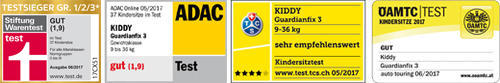 Ud over den gennemprøvede sikkerhed - den tidligere model Opnået udvikling "god" (2,1) i test af Stiftung Warentest og ADAC - den nyeste model i serien fra Guardianfix Kiddy tilbyder således forbedret side kollisionsbeskyttelse.