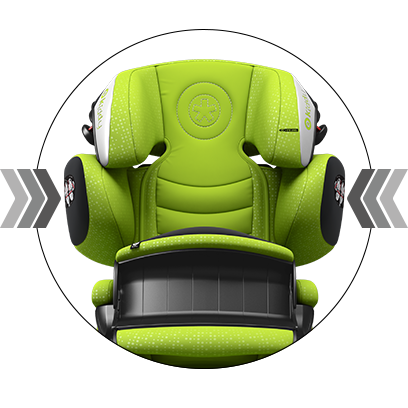 Med den praktiske k-fix + stik kan sædet nemt fastgøres til Isofix-systemet i bilen. Den optimerende k-fix + systemet gør det også muligt for sædet at bevæge sig sidelæns for at absorbere den laterale slagenergien i tilfælde af en ulykke. Den større individuelle justerbar læne sig tilbage vinkel giver barnet en afslappet og behagelig siddestilling, især under lang tur. I biler uden Isofix kan k-fix + stik nemt klappes ind.